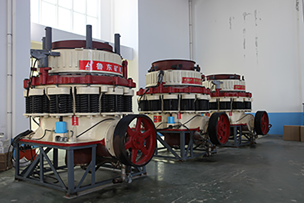 When the cone crusher is working, the eccentric sleeve is driven by the motor through the V-belt, the large pulley, the transmission shaft, the bevel gear, and the large-vertical gear. The broken cone axis is rotated under the eccentric bushing to make the broken wall The surface sometimes leaves the surface of the rolling wall, so that the material is continuously crushed by impact, extrusion and bending in the annular crushing cavity composed of the fixed cone and the moving cone. After multiple extrusions, impacts and bending, the material is broken to the required particle size and discharged through the lower part.